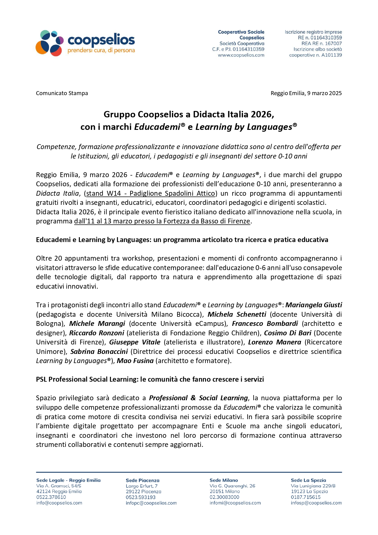 Quarant’anni di esperienza e oltre 3.500 professionisti consentono a Coopselios di confermarsi un partner di grande valore per le istituzioni pubbliche e per le famiglie, grazie alle proprie capacità di progettazione e realizzazione, coniugate alla costante propensione verso l’innovazione e l’efficienza.